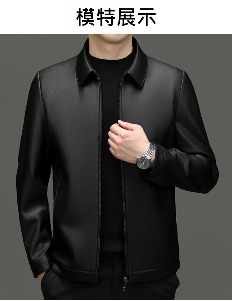 《整用一張牛皮》高級男士翻領皮夾克